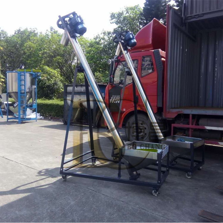 4、物料放入料箱便能在上料電機(jī)的動(dòng)力下,通過螺旋提升物料,物料從出料口排出進(jìn)入攪拌機(jī)或儲(chǔ)料倉(cāng)。