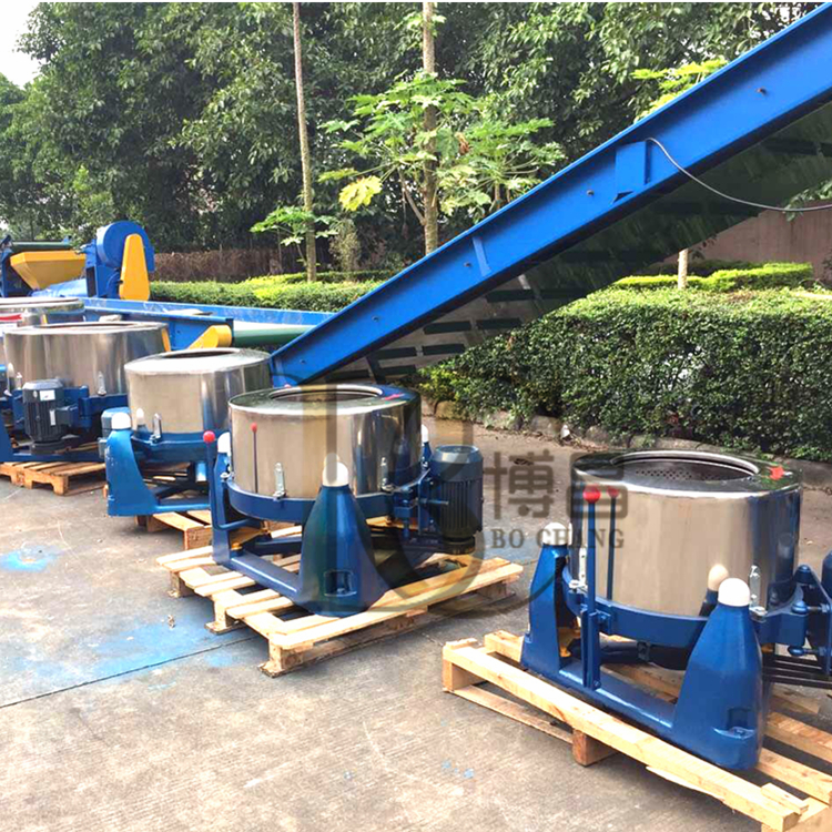 工業脫水機電動機通過傳動結構帶動內筒進行同向高速旋轉從以產生離心力,在離心力的作用下,電鍍件表面及內壁的電鍍液通過筒壁上的網眼又或者內外筒頂部的夾層流至排水槽中,經排水管流出機外。轉動時間的加長,分離因數不斷升高,達到一直值后,甩干效果下降,這時待排水管中無明顯電鍍液流出時,即可關閉電源,完成單次工作循環。